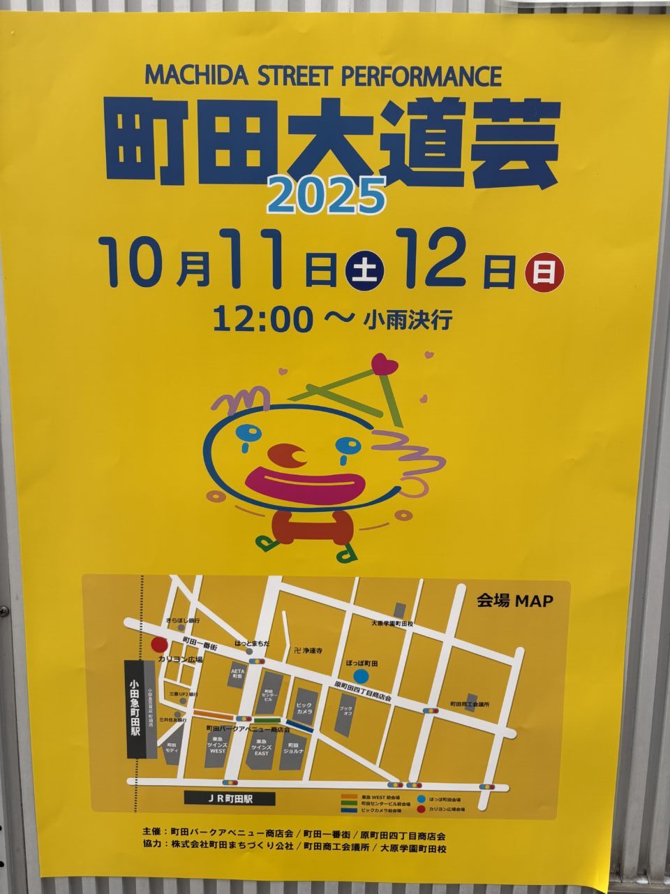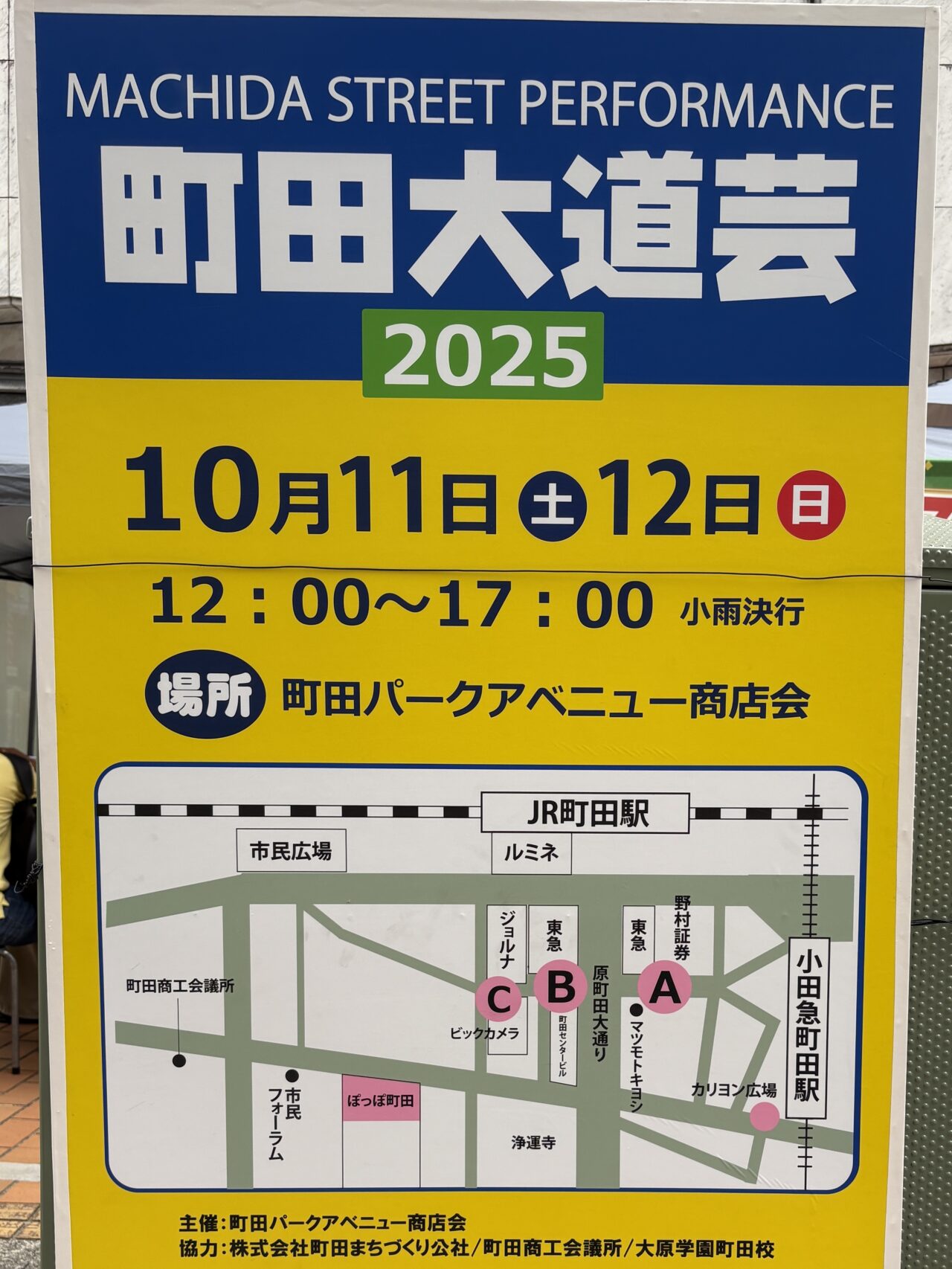 2025年10月11日(土)・12日(日)、「町田大道芸2025」が開催されます。町田駅周辺の各会場で大道芸が楽しめる恒例イベントです。