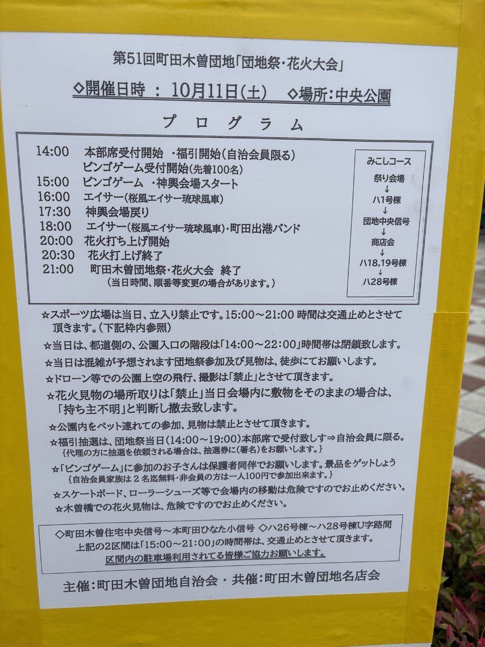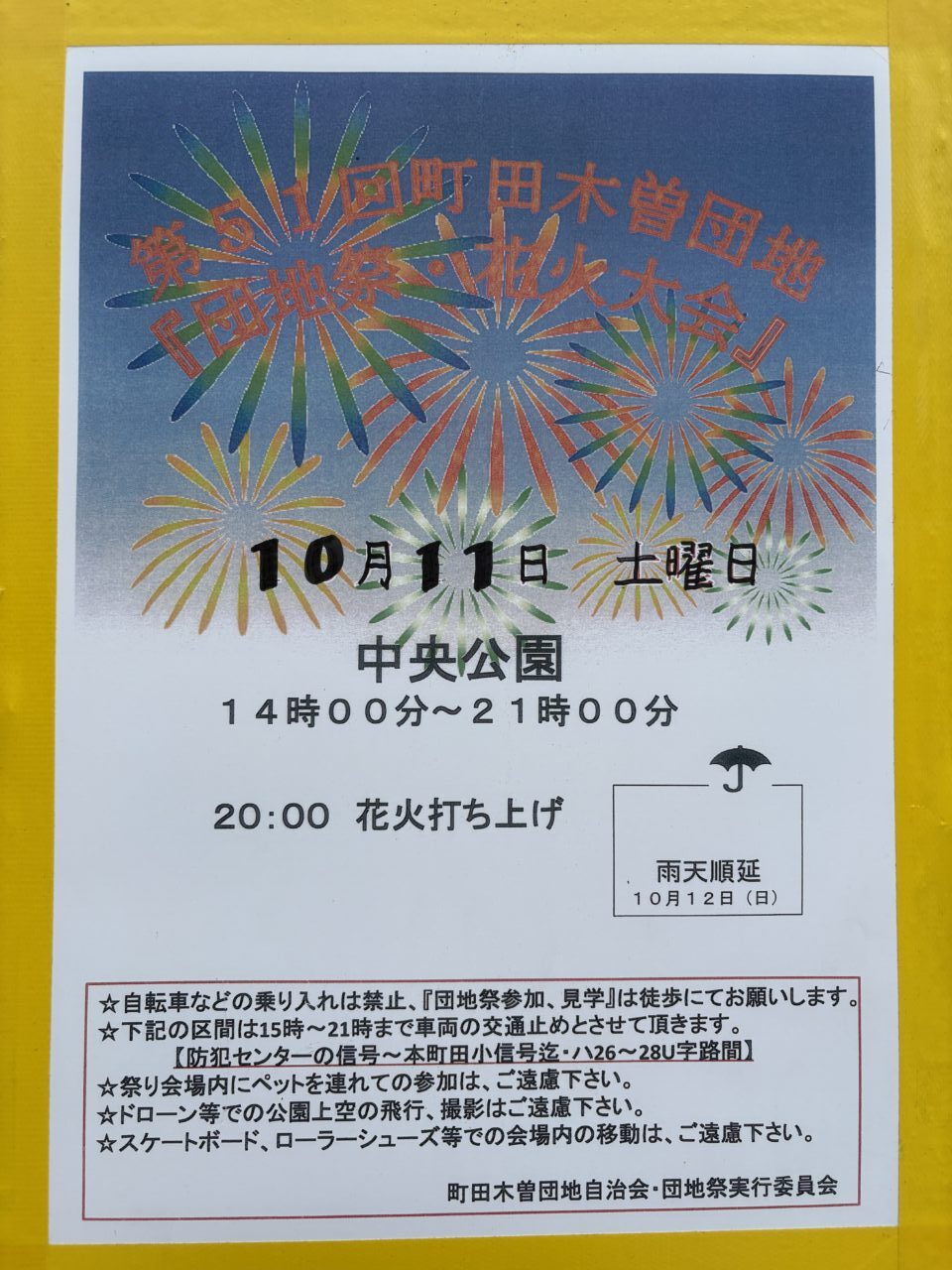 日時 :10月11日(土) 14:00~21:00 ※雨天時は12日(日)に順延 場所:町田木曽団地内の中央公園