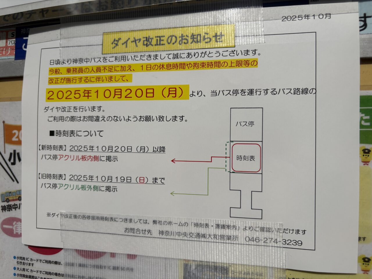 2025年10月20日(月)、神奈中バス大和営業所管内の系統においてダイヤ改正が行われます。