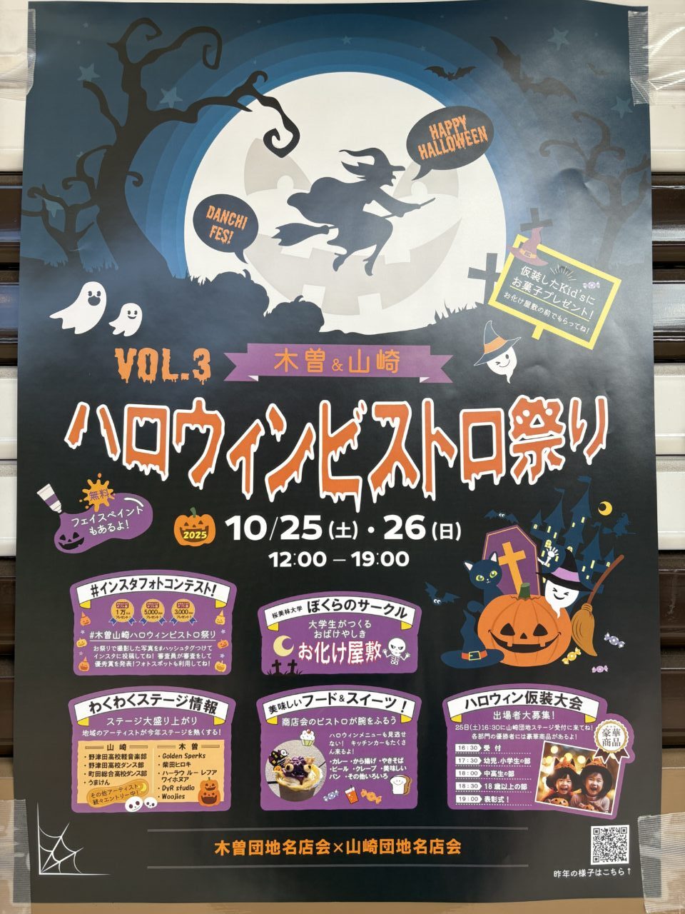 2025年10月25日(土)・26日(日)、山崎団地・木曽団地の商店街で「ハロウィンビストロ祭り」が開催されます。