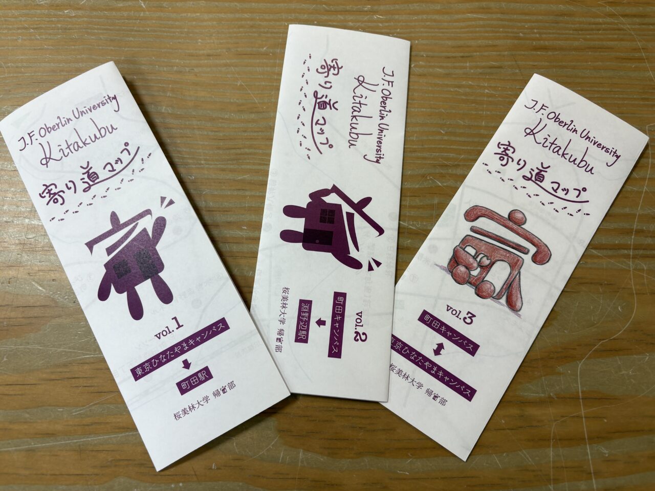 「寄り道マップ」は、桜美林大学「帰宅部」が手作りしたマップです。大学キャンパス(町田キャンパス・東京ひなたやまキャンパス)から最寄り駅までの道のりを中心に、程よく目印や寄り道スポットが描かれており、その日の気分に合わせて観光にも利用できます。