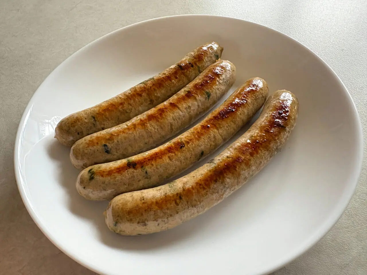 「匠ソーセージ」は、町田市小山町の「井上糀店」の匠(米みそ)と大葉を練り込んだソーセージ。弱火で軽く焼いて焦げ目をつけるのがおすすめとのこと。