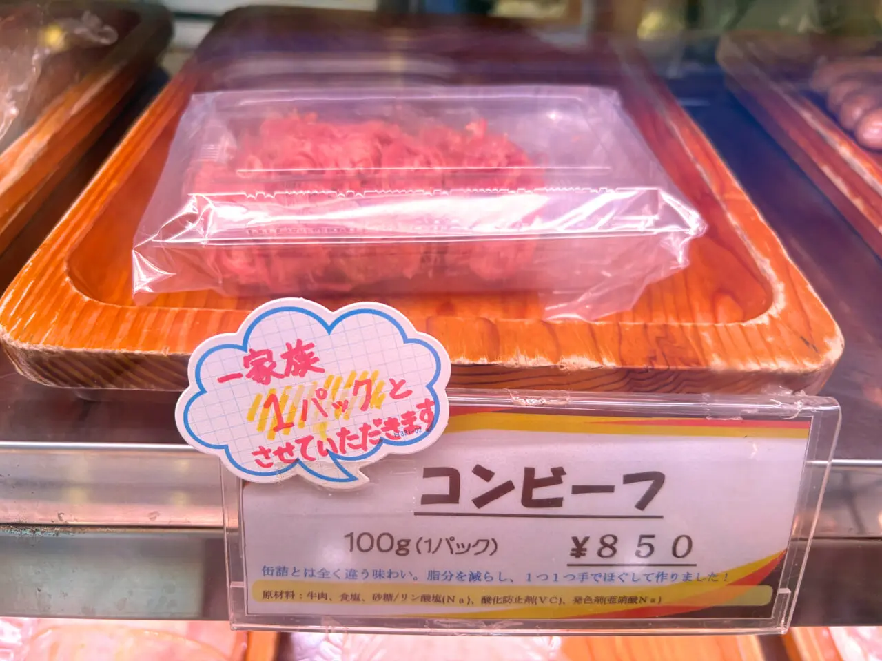 原料の牛肉がなかなか入荷できないため、コンビーフの販売は不定期で、販売日の告知はありません。出会えたらラッキーな商品で、取材日にたまたま見かけたため、さっそく購入しました!