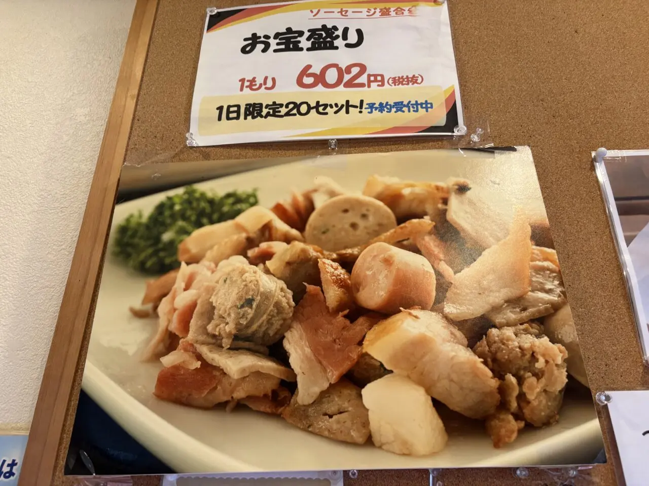 「お宝盛り」は、独逸屋自慢の自家製ソーセージの盛り合わせ。一皿でいろいろな製品が味わえる、まさに”お宝”のような一品。