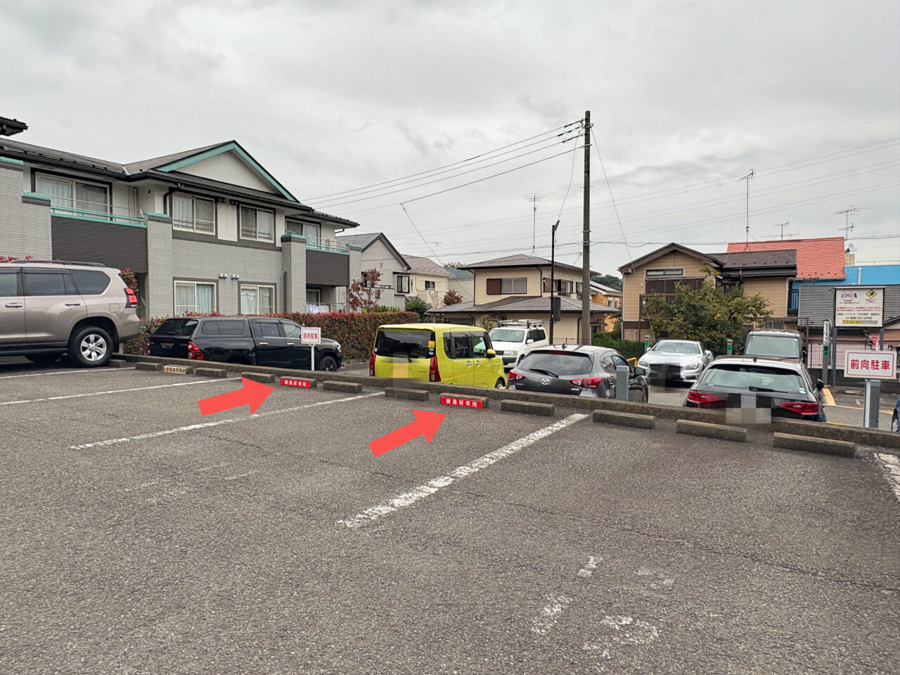 車の場合は、店舗前の坂道を少し上っていき、コインパーキングの先の駐車場に、2台分用意されています。