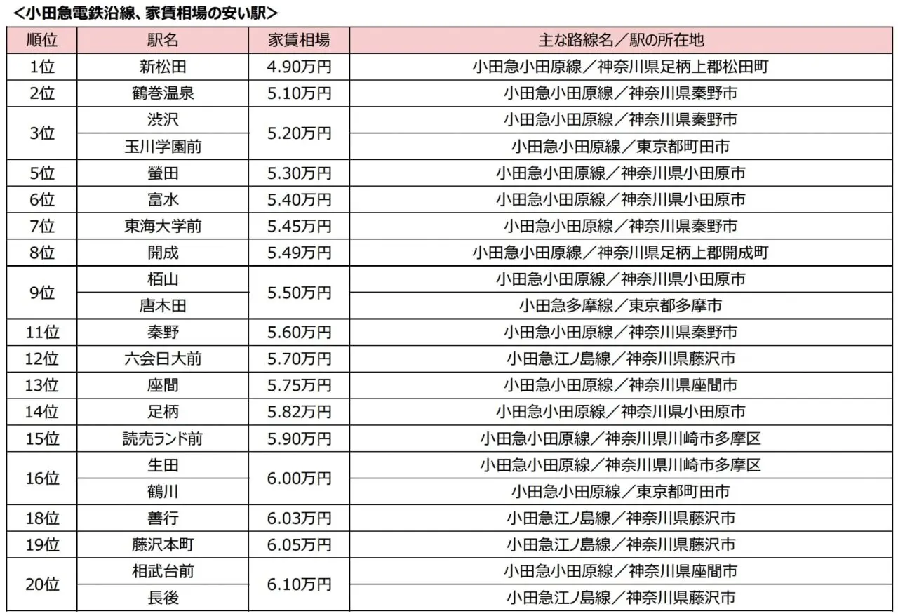 株式会社リクルートが運営する『SUUMOジャーナル』が、小田急線沿い全70駅を対象にした「家賃相場の安い駅」を発表しました。