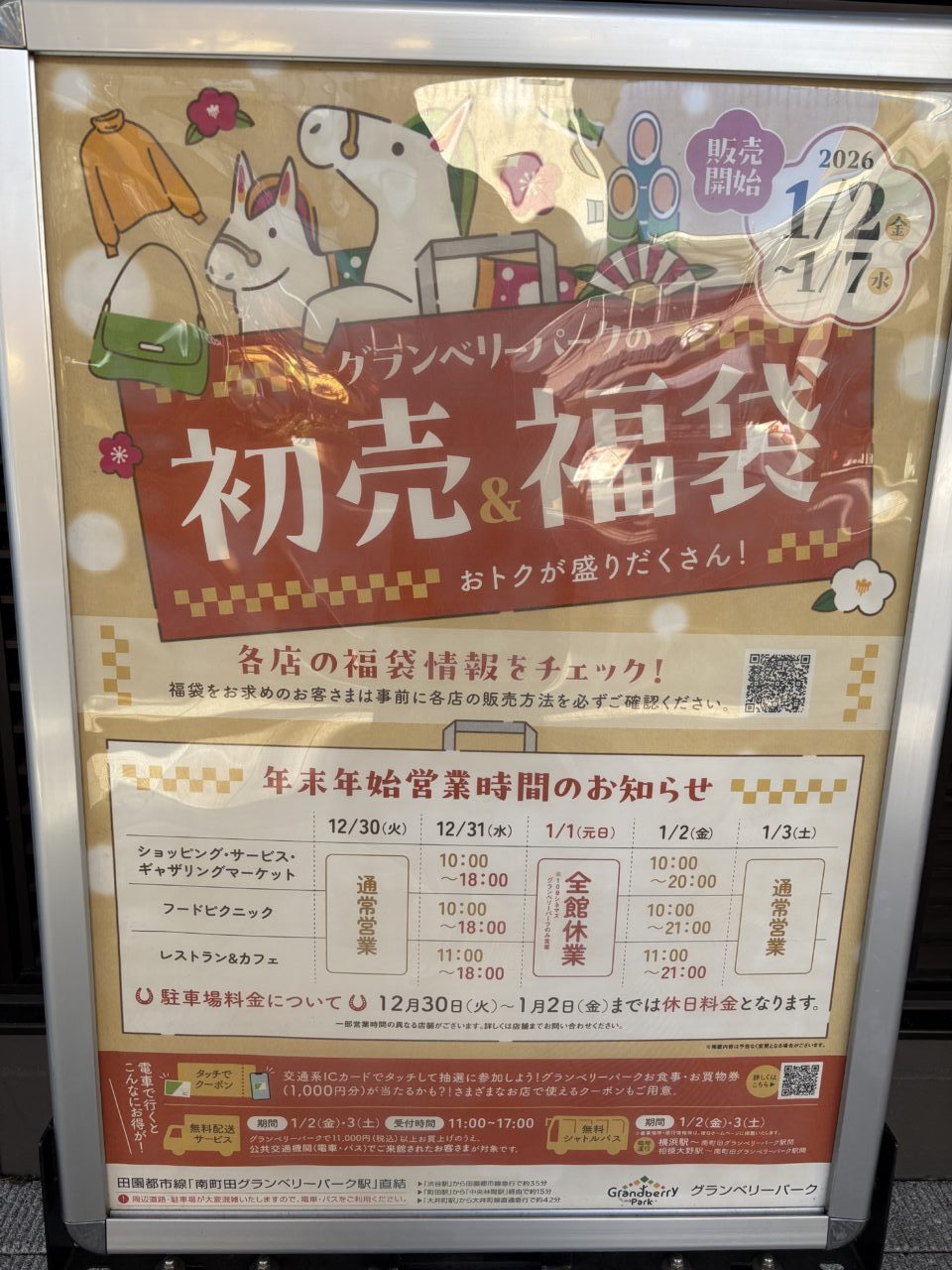 お正月の楽しみのひとつ、初売り。「グランベリーパーク」の初売りは、2026年1月2日(金)からスタートします!
