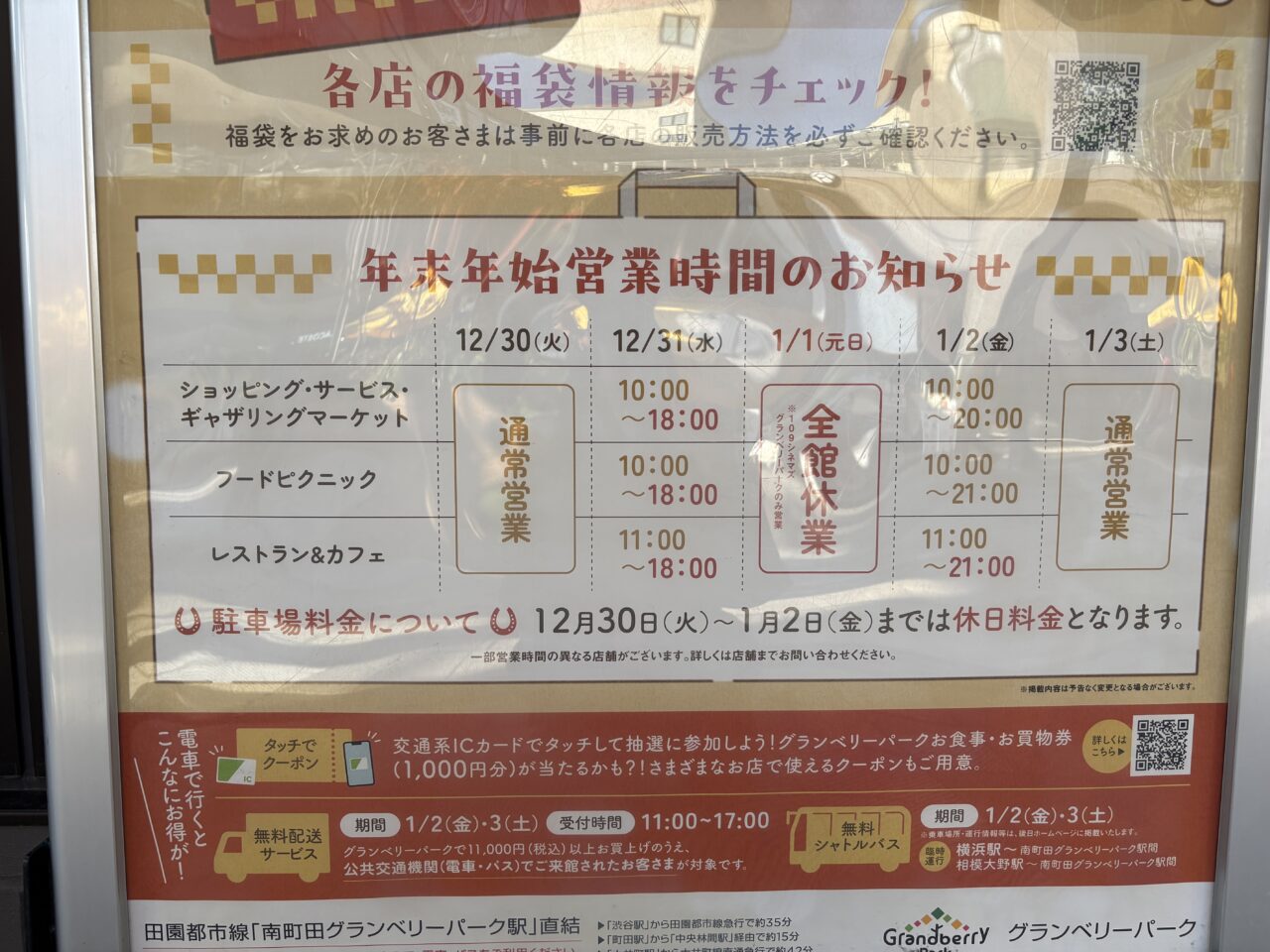 【町田市】「グランベリーパーク」の初売りは1/2(金)~スタート! 1/2・3限定で「無料配送サービス」「無料シャトルバス」運行も