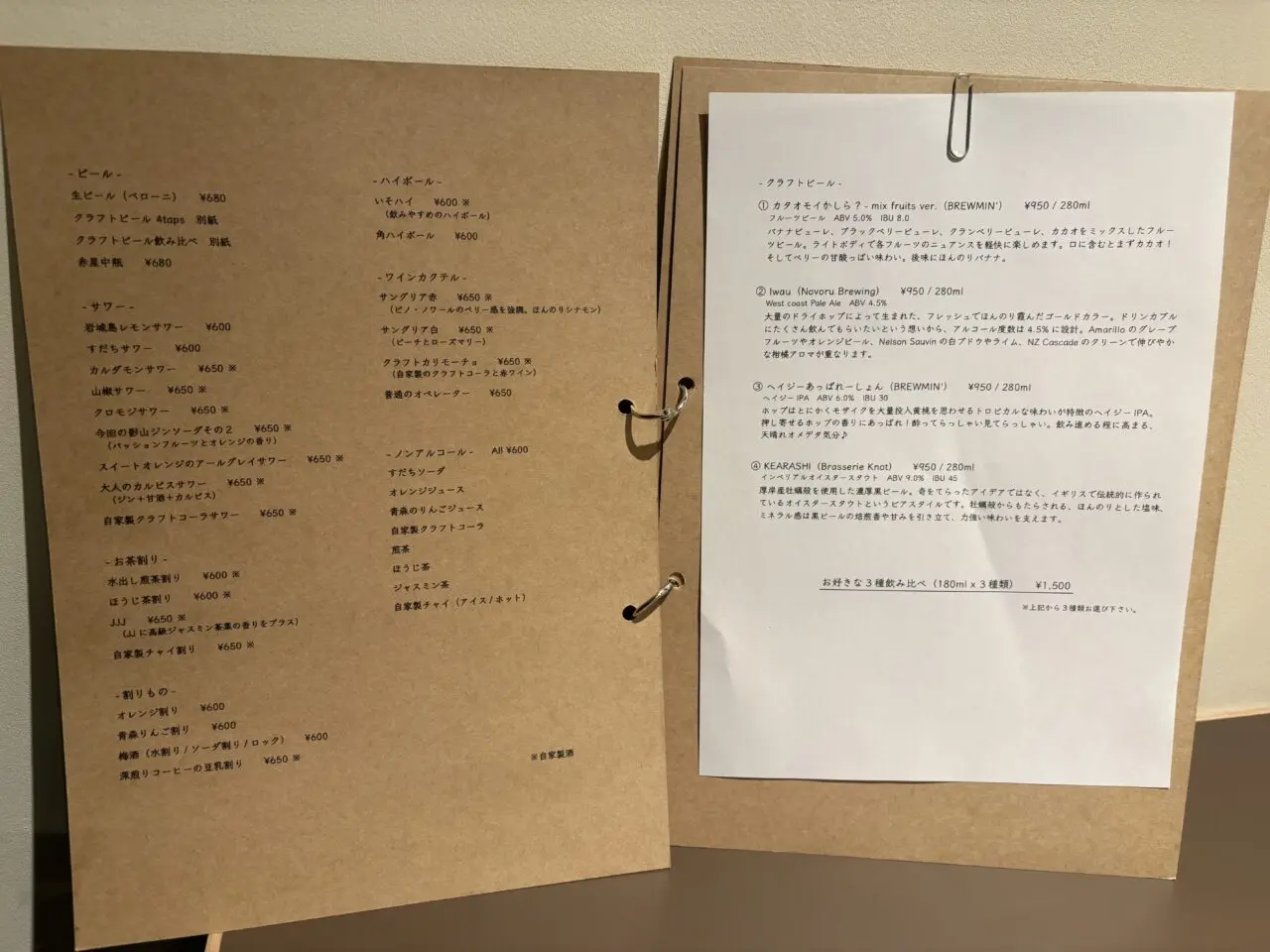 ドリンクも充実しており、お酒は調香師がセレクト。香りや余韻まで楽しめるラインナップがそろっています。クラフトビールやクラシカルなワイン、カクテルなども用意されており、料理に合わせて好みのお酒を選ぶ楽しみがあります。ぜひお店でチェックしてみてくださいね。