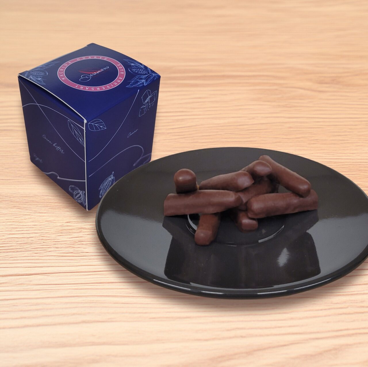 ダークチョコレートでコーティングした砂糖漬けオレンジピールのラグジュアリー・オランジェット。町田店開店50周年を記念した限定パッケージです。