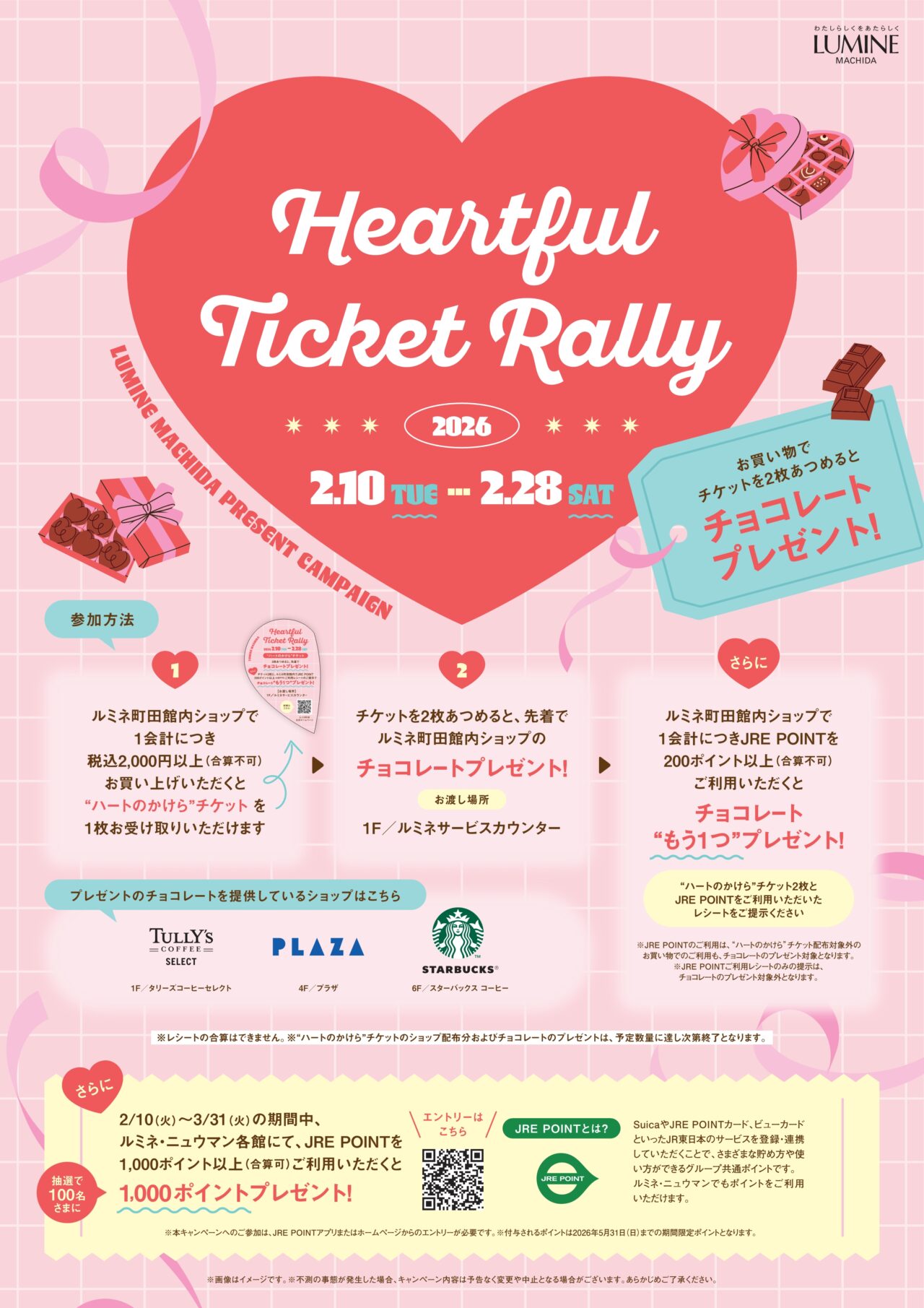 2026年2月10日(火)~28日(土)の期間、ルミネ町田で、バレンタインシーズンにぴったりの「LUMINE MACHIDA Heartful Ticket Rally」が開催されます。