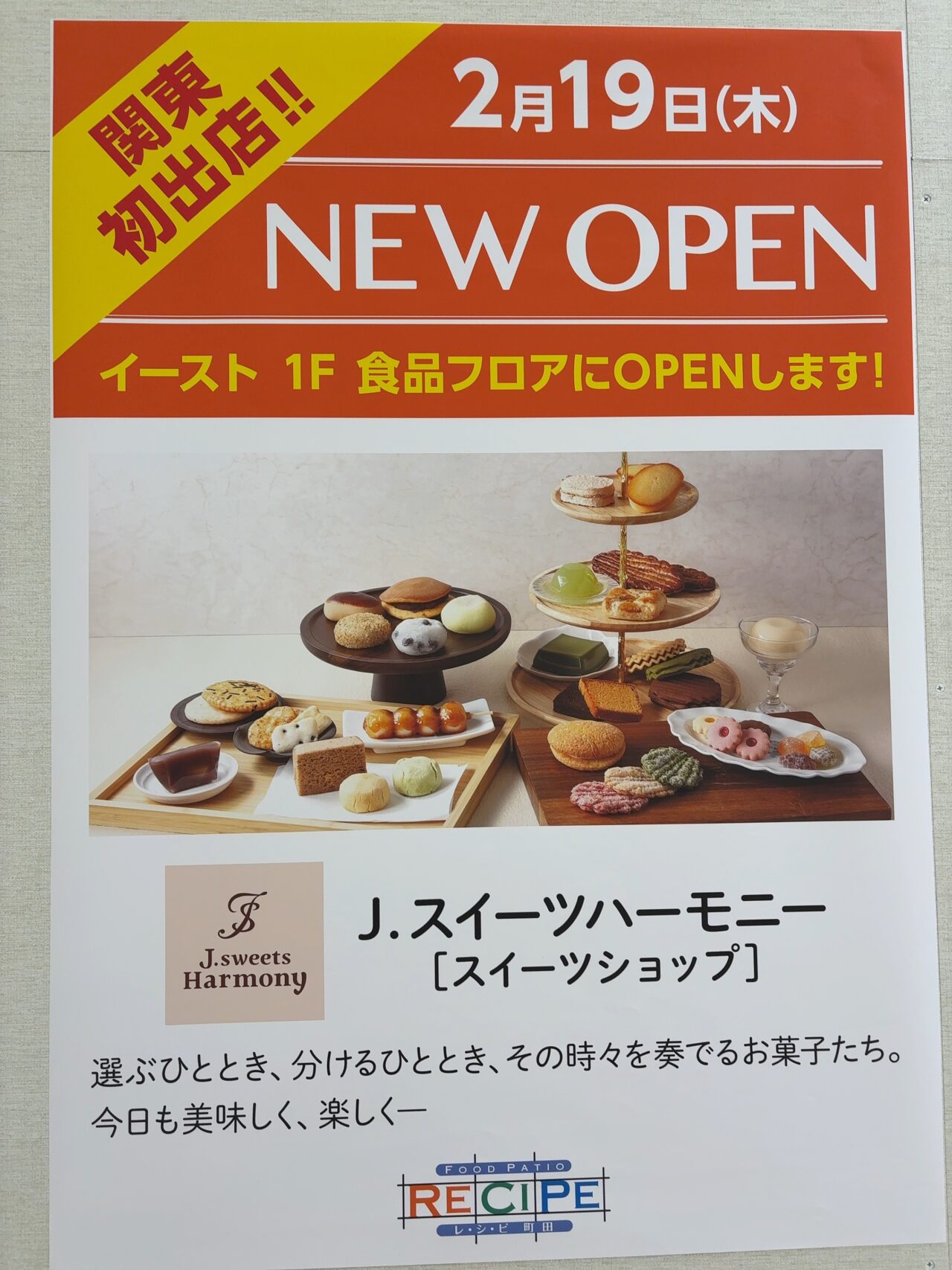 町田東急ツインズイースト1階に「J.sweets Harmony(ジェイ・スイーツハーモニー)」がオープン予定です。