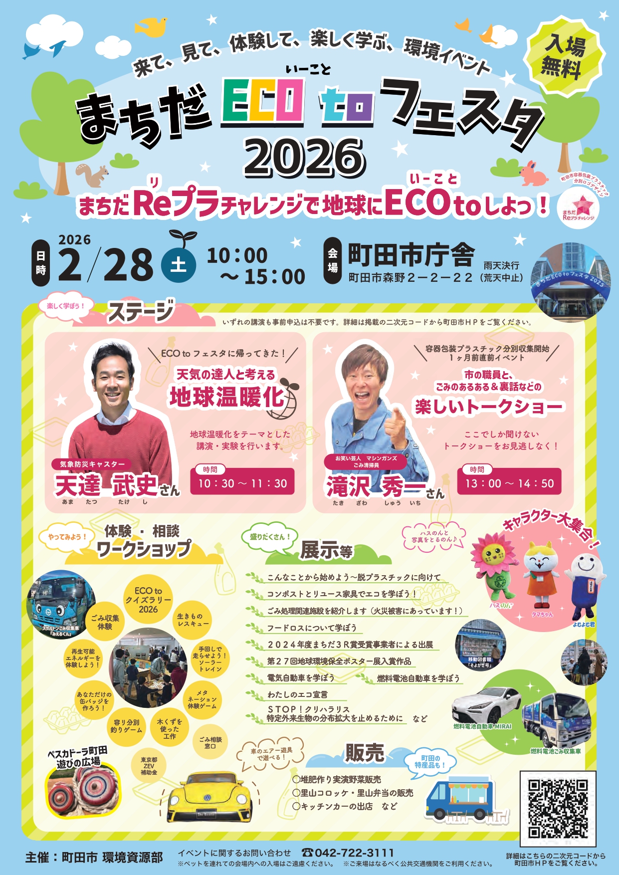 2026年2月28日(土)町田市庁舎で、来て、見て、体験して、楽しく学ぶ、環境イベント「まちだECO to(いーこと)フェスタ2026」が開催されます。