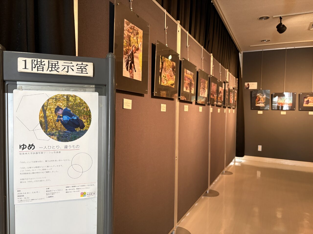 今回展示しているのは、桜美林大学の映像写真サークルの部員が撮影した約50点の写真。「ゆめ 一人ひとり、違うもの」という企画展で、学生ならではの感性で切り取った四季彩の杜の風景や瞬間が並びます。