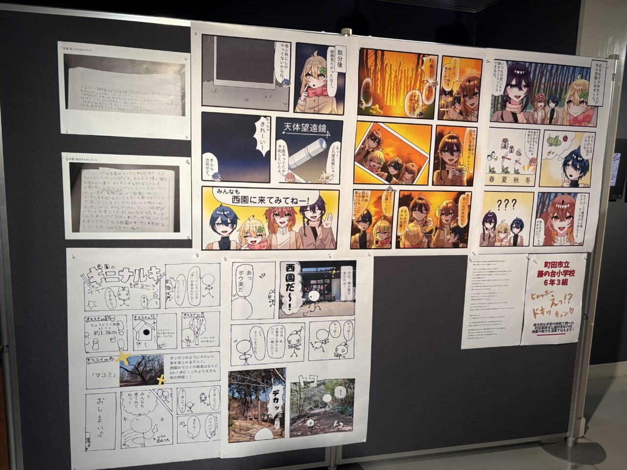 また、会場内の一画には、町田市立藤の台小学校の6年3組の児童による漫画を展示したコーナーもありました。こちらは昨年度に続き、薬師池公園の魅力発信をテーマにした取り組みの第2弾として制作されたものです。