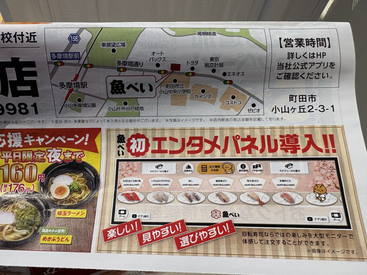 チラシには「魚べい初 エンタメパネル導入」との案内も。ぜひ体験してみたいですね!