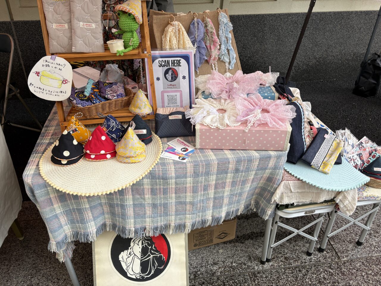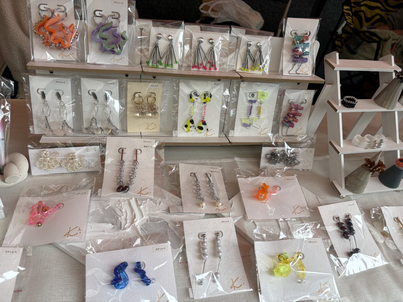かわいらしいハンドメイド布小物のお店や、繊細で華やかなアクセサリーのお店も並んでいました。