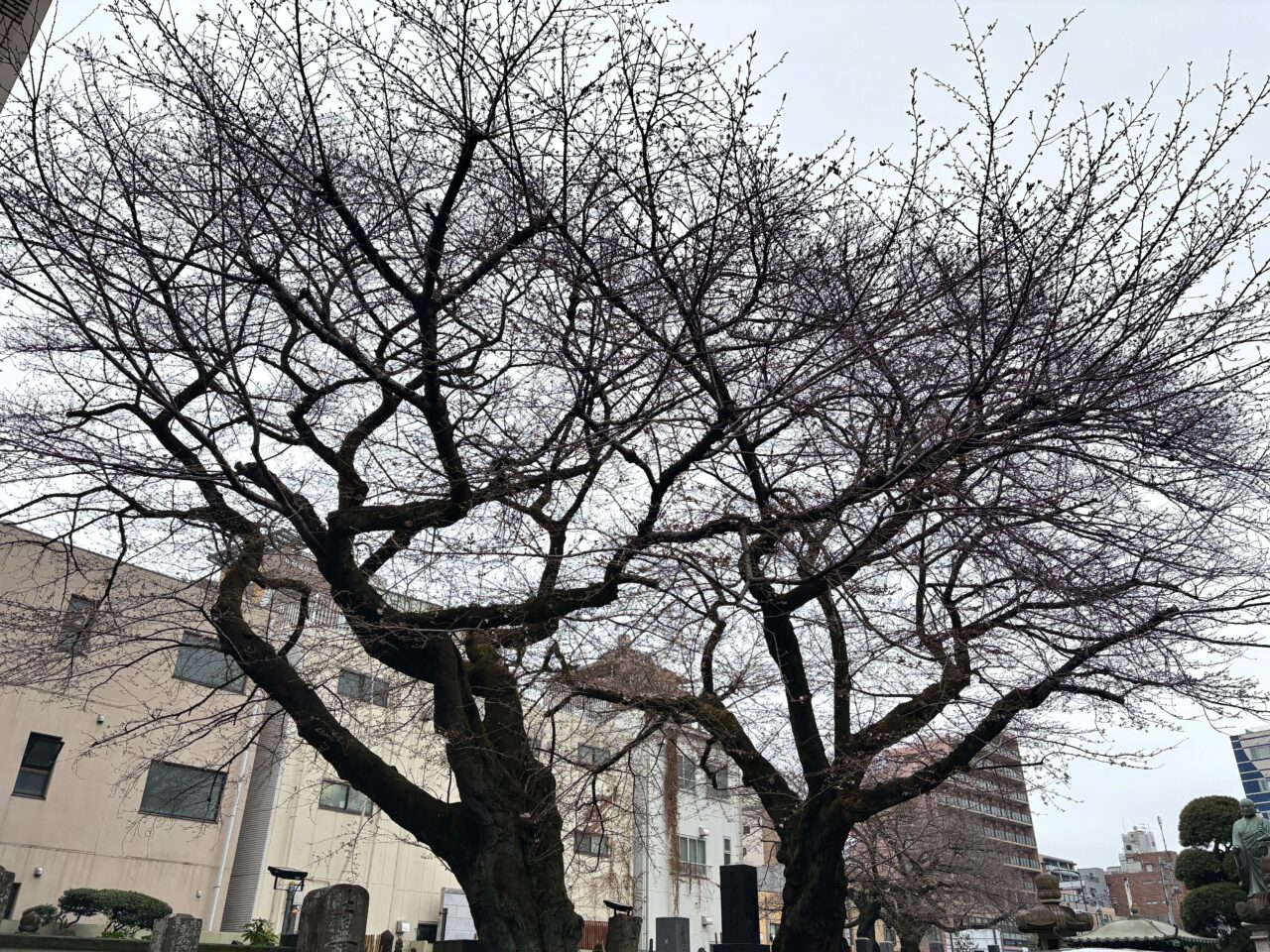 浄運寺には種類の異なる桜が植えられているため、時期をずらして楽しめるのも魅力です。3月20日時点ではソメイヨシノは開花前でしたが、今週末には見ごろを迎えそうですね。