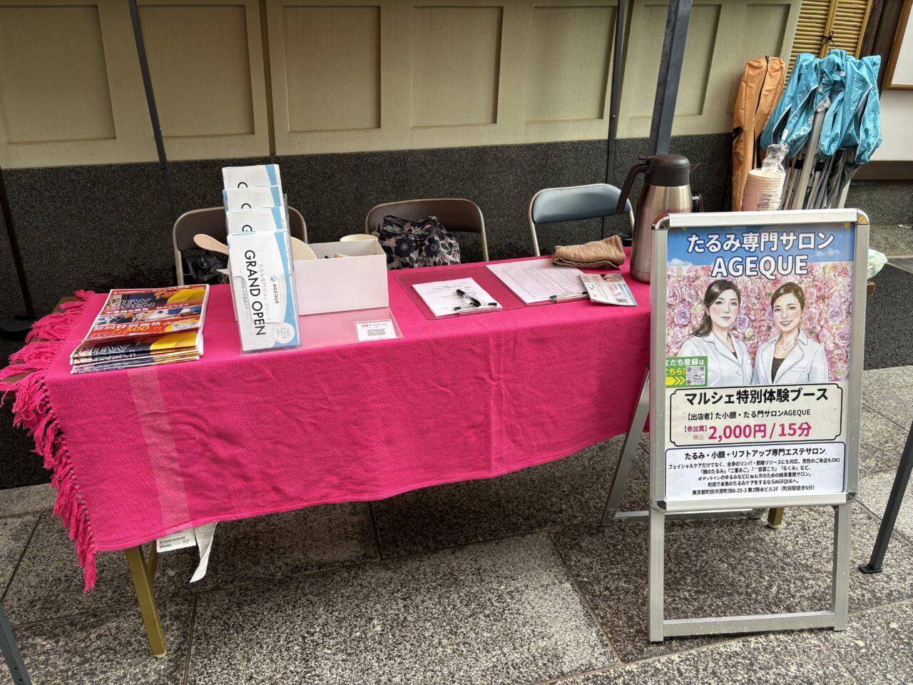 こちらは、たるみ専門サロン。マルシェ特別体験を実施していました。室内に施術スペースがあるそうです。
