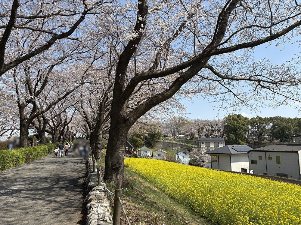 尾根緑道では、菜の花と桜の共演を見ることができました。