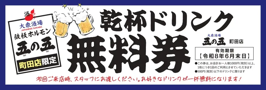 【町田市】町田駅徒歩1分!「鉄板ホルモン五の五 町田店」4/29オープン。次回使えるドリンク無料券も